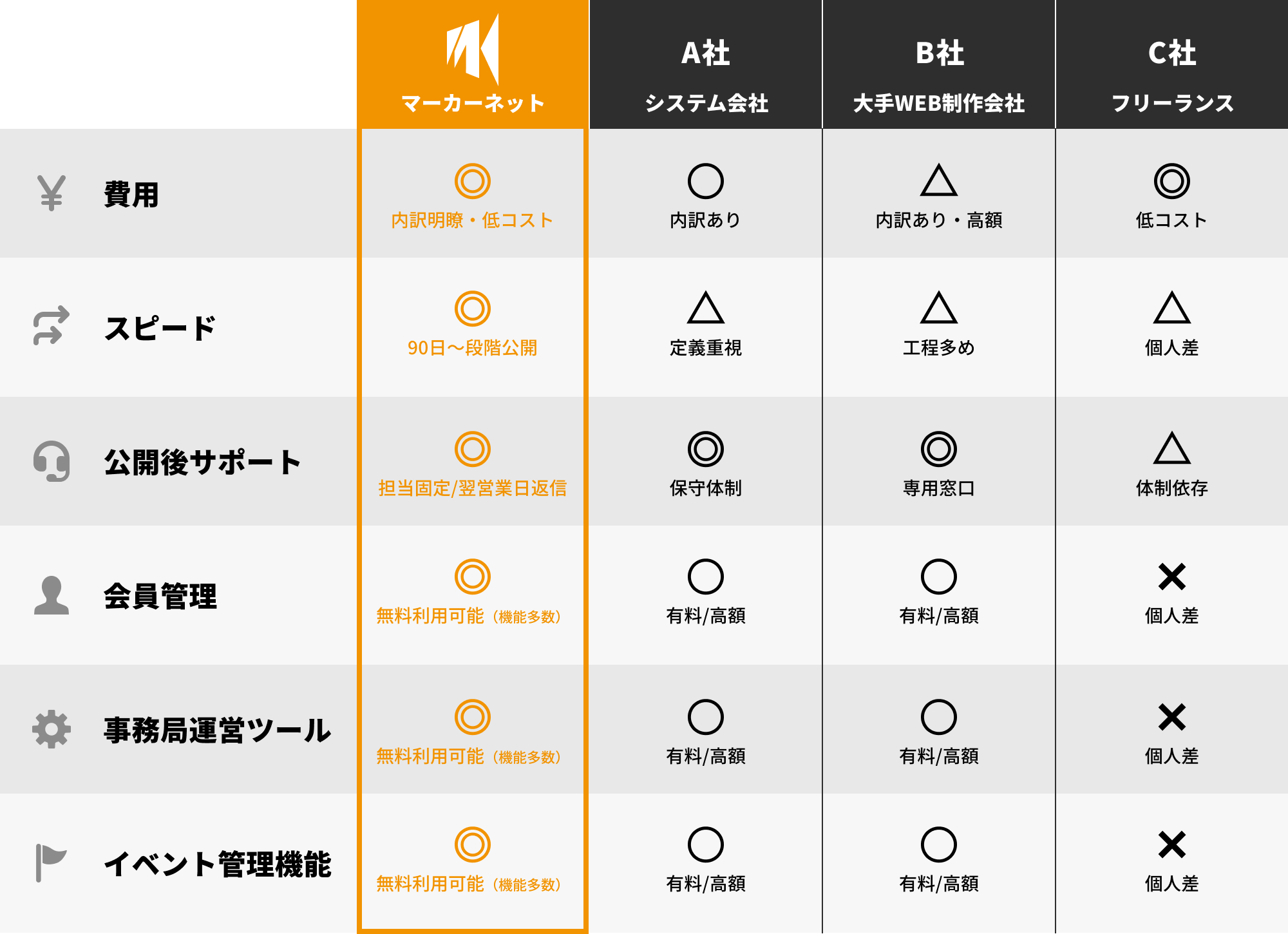 そこに学会運営への深い理解を組み合わせたのが我々マーカーネットです。この二つを高いレベルで両立している国内でも数少ない専門家集団です。